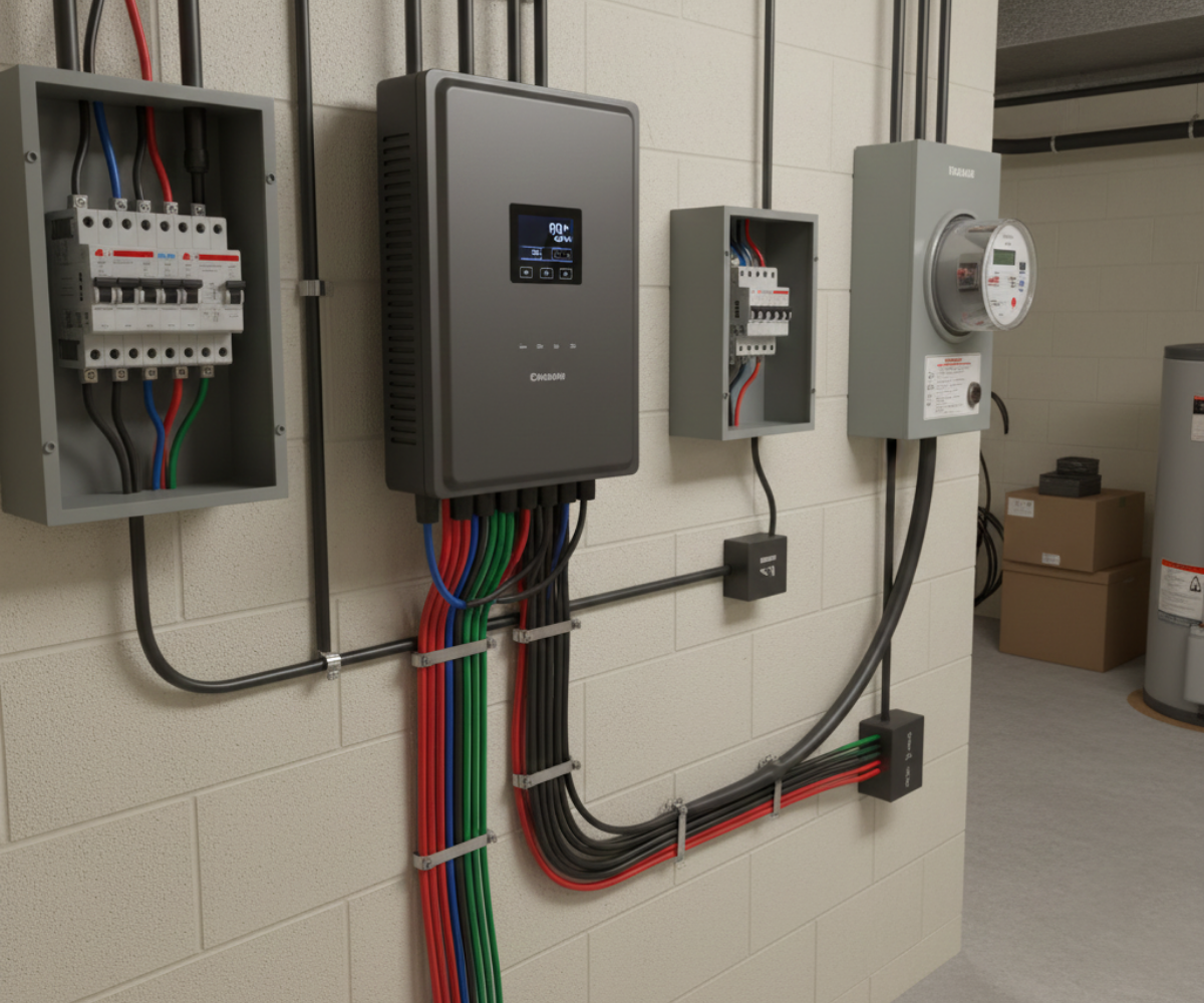 A complete solar system includes panels, an inverter, wiring, and safety components. During daylight, the system powers appliances directly and may also store excess energy in batteries or export it to the grid.
